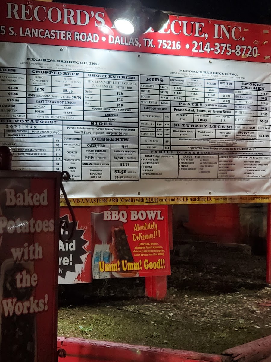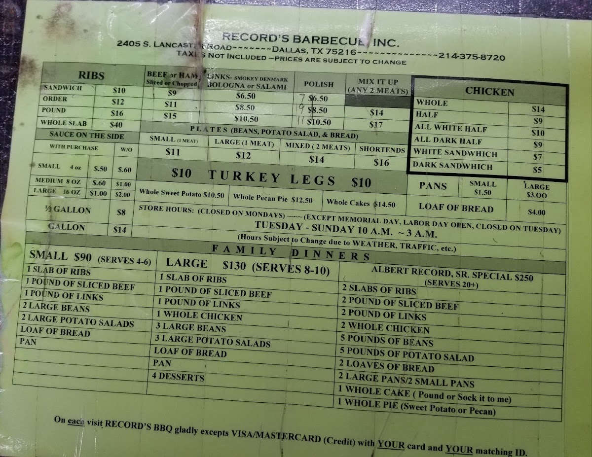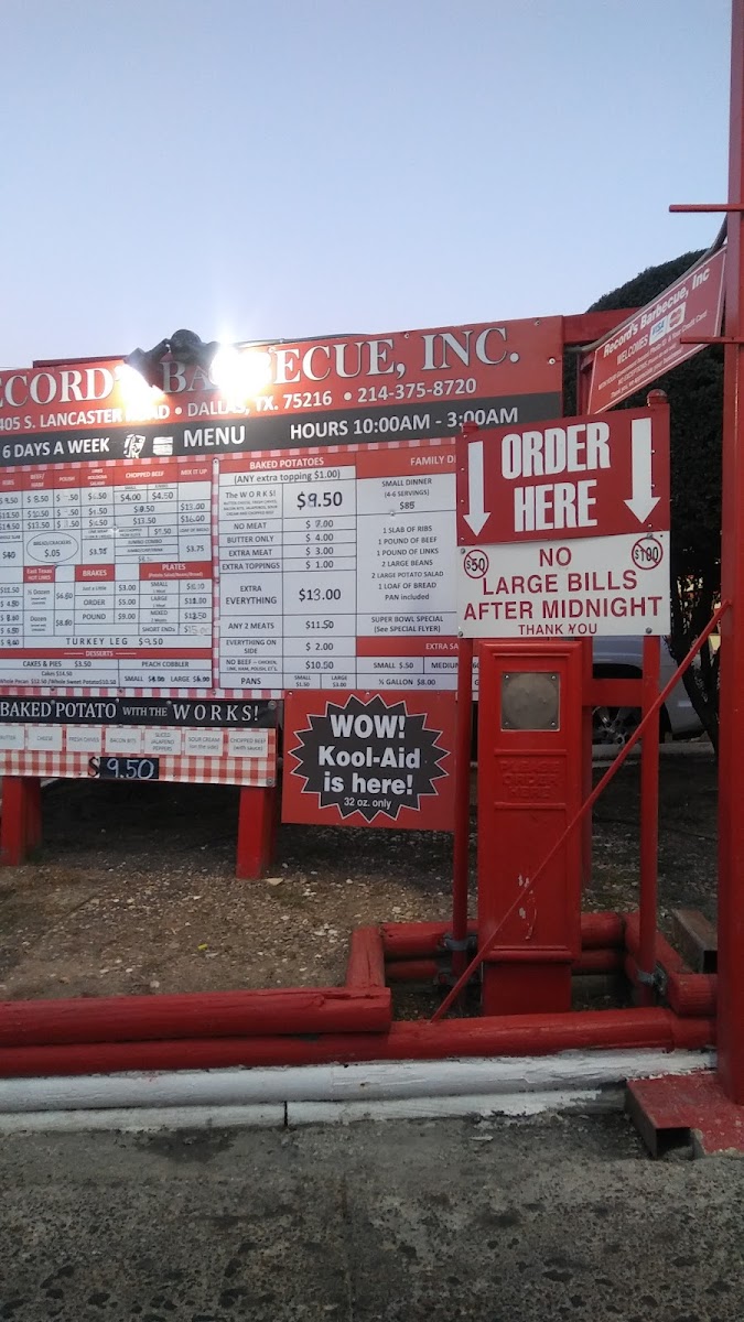 Record's Barbecue Menu